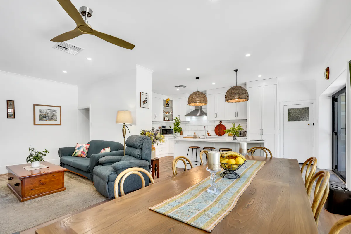 A seamless deck overlooks beautifully established gardens with roses, mature trees and a variety of fruit trees including citrus, apple, fig, plum, mulberry and pear. It's a private outdoor haven ideal for relaxing or hosting family and friends.
